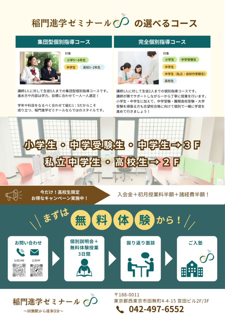 稲門進学ゼミナールでは、一人ひとりに合わせたカリキュラムで、